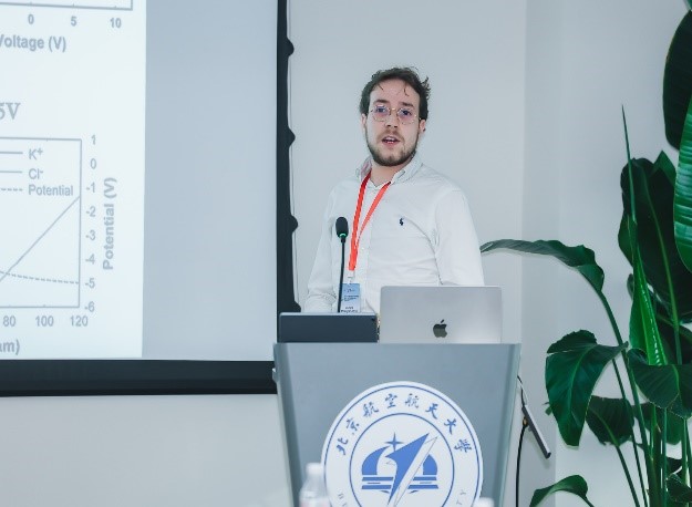 Soufiane Abdelghani-idrissi 副教授介绍了其在离子二极管及其衍生物的基本原理和应用方面的研究进展。北航beat365在线唯一官网衡利苹教授介绍了仿生超浸润界面上的电致驱动微流体,通过设计一种超透明的光热释电超润滑的平台,可实现高粘液体的精准分离,展示了其在液体分离领域的巨大应用潜力。