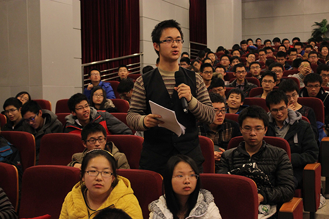 最后,江雷院士与在场的同学进行了热烈的互动和深入的交流。虽然已近晚上十一点,但是同学们积极踊跃、精彩深刻的一次次提问再次将报告推向高潮。正如江雷院士在报告会结束前所说:他会将科学研究与生活的真谛传递给更多的学生,启迪他们的人生,改变他们的人生,鼓舞更多的莘莘学子勇攀科学高峰!也正如一名同学在网络平台发表的感言:发现、发明、创造是正确的科研道路;强烈的责任感、高效的执行力是严谨的科研素养;10000小时定律是坚持不懈的科研精神。江雷老师,也许正如您说的,您真的改变了我们的人生!