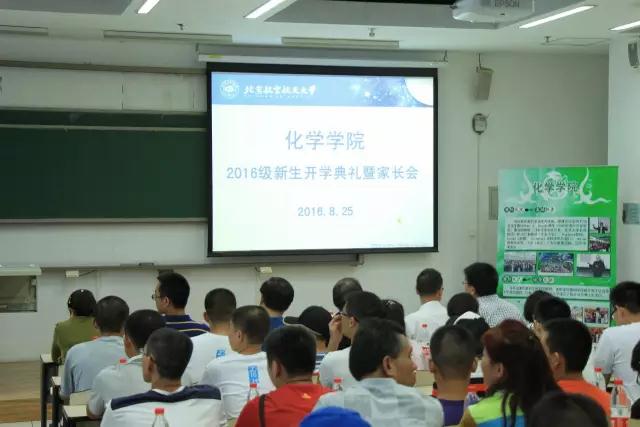 2016年8月25日下午四点,北航beat365在线唯一官网2016级新生开学典礼暨家长会在教3-202顺利举行。学院院长江雷院士,常务副院长郭林教授,挂职副书记陈钧,院长助理程群峰教授,党委副书记李丹老师,分团委书记韩炜老师,一班班主任赵东宇老师,二班班主任岳永海老师,各级辅导员,大一新生和部分家长代表出席了此次大会。