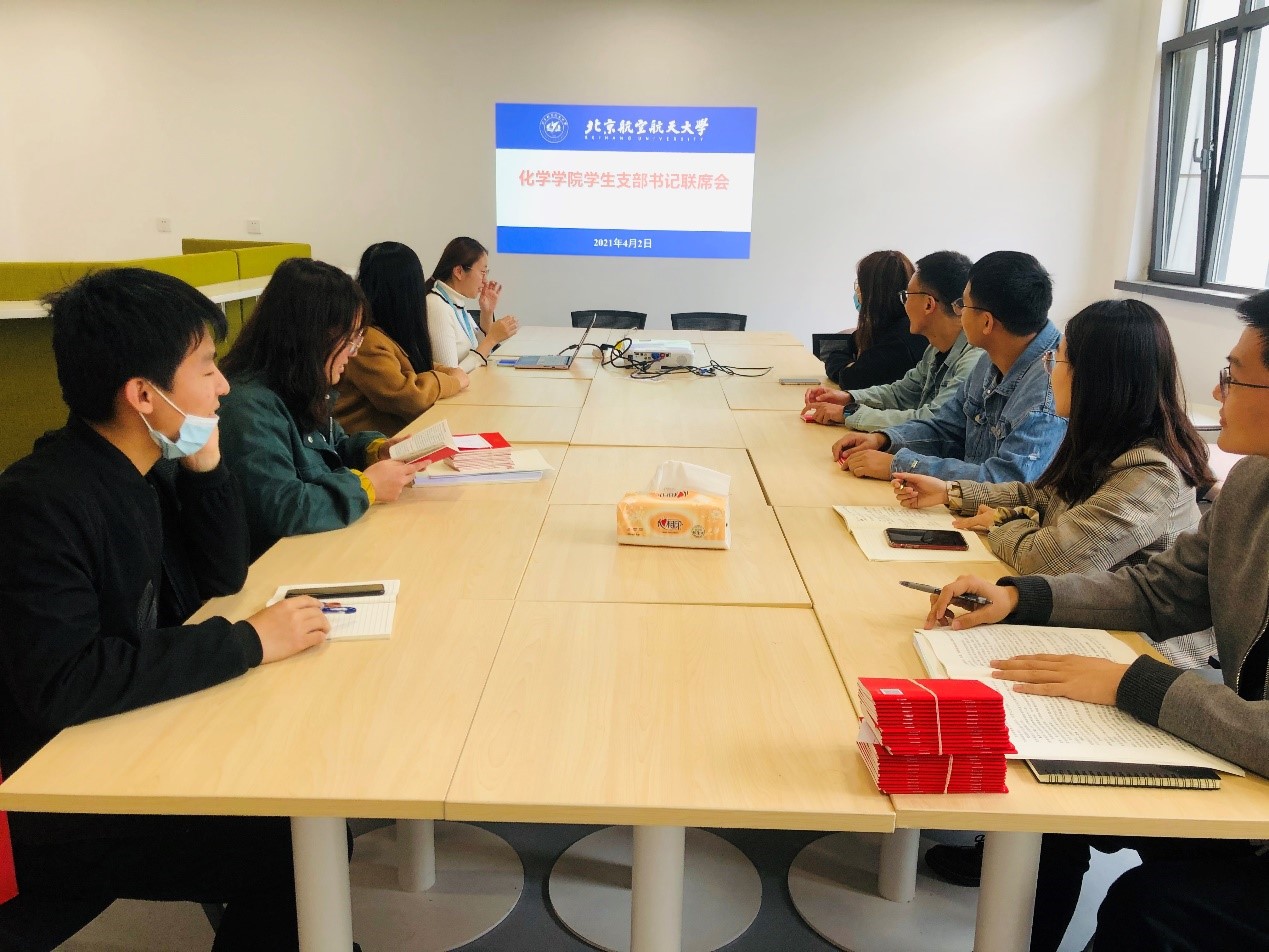 2021年4月2日,beat365在线唯一官网学生党支部书记联席会暨党务工作交流会在沙河实验4-206会议室顺利召开。本次会议由专职组织员崔钰莹老师主持,beat365在线唯一官网分团委副书记魏茜、各学生党支部书记参加本次会议。