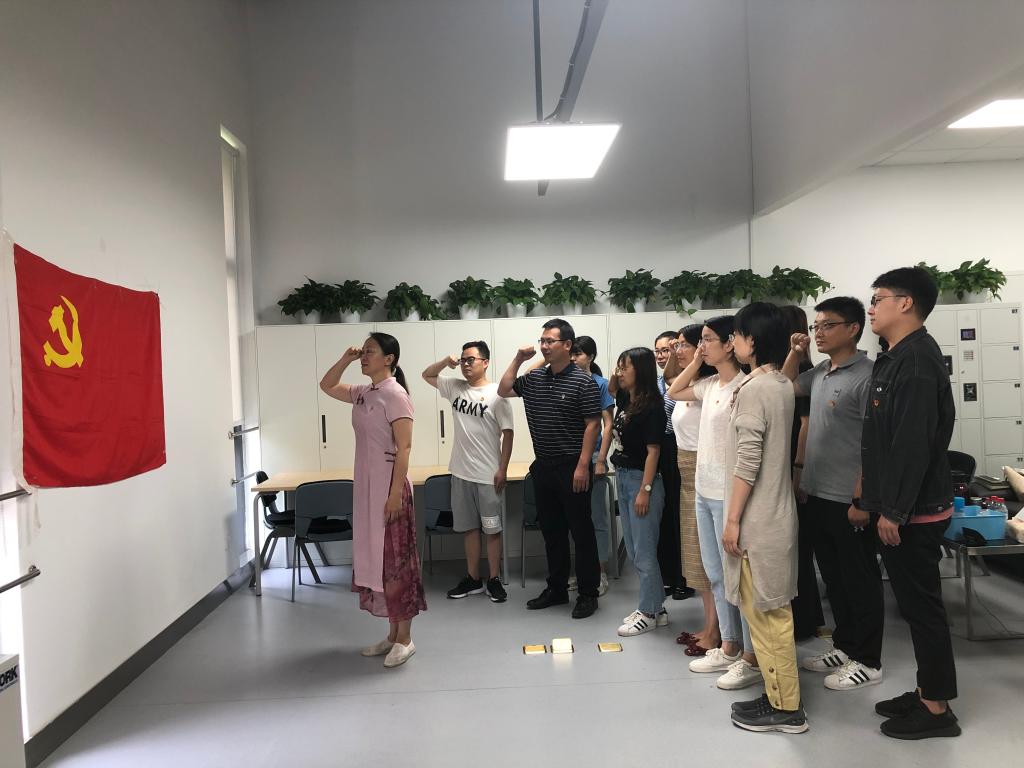 会上,书记李红捷面对党旗,庄严举起右手,带领全体与会人员共同重温入党誓词,重新激发了党员入党时的热血和激情。