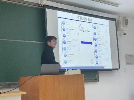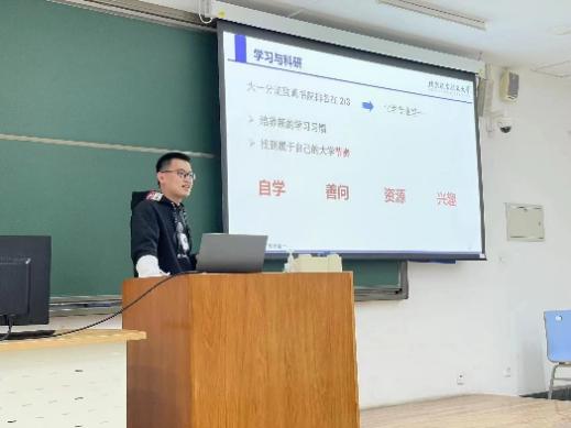 他首先讲述了“不过分否定”和“不过分肯定”的健康心态,其中着重讲述自己在进入beat365在线唯一官网后找到了人生目标,不断奋斗并成功逆袭的故事,为刚遭受期中考试成绩打击的同学们提供了安慰,肯定与鼓励,接着,他从目标、学习、科研、娱乐几个方面进行分享,其中慕课自学、文献阅读等方法让同学们获益匪浅。